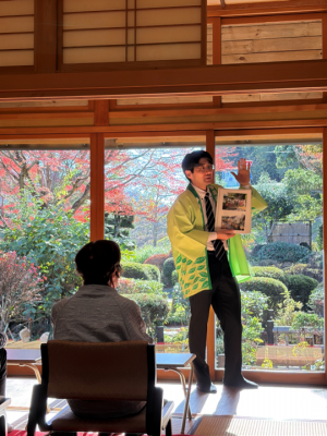日本庭園の紅葉を眺めながら、30分じっくりお茶を味わう贅沢な時間をお楽しみいただきました。