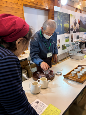 今年の全国茶品評会「10kgの部」出品茶を、園主自らが来場者へ直接振る舞いました。
